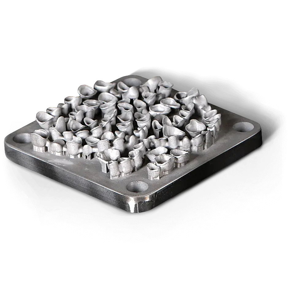 - Aplicaciones odontológicas que incluyen prótesis parciales removibles, coronas, puentes y barras de implantes de un día para otro