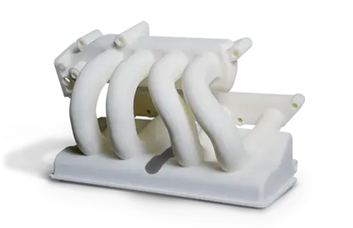SLS realmente se destaca cuando necesita piezas de plástico duraderas. Las piezas de SLS son reconocidas por su resistencia y compiten con las piezas elaboradas con métodos de fabricación tradicionales como el moldeado por inyección. SLS se utiliza en diversas aplicaciones de uso final en industrias como el sector automotriz y aeroespacial.